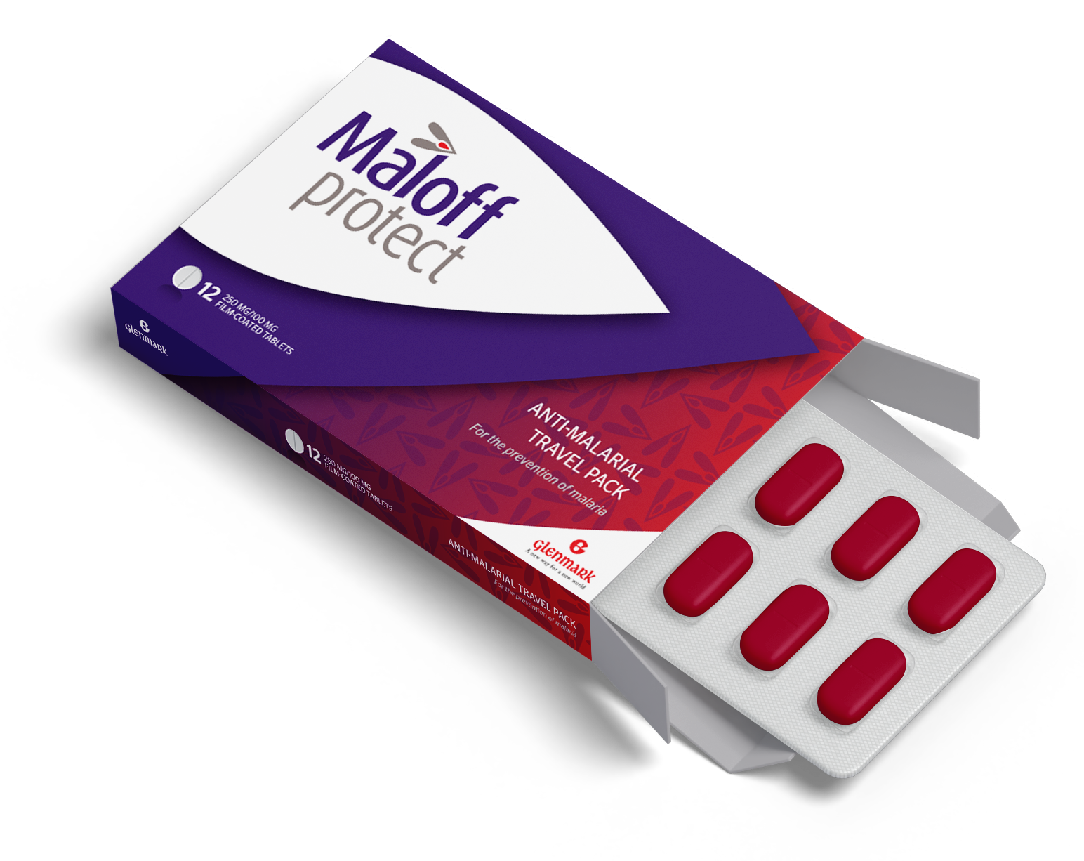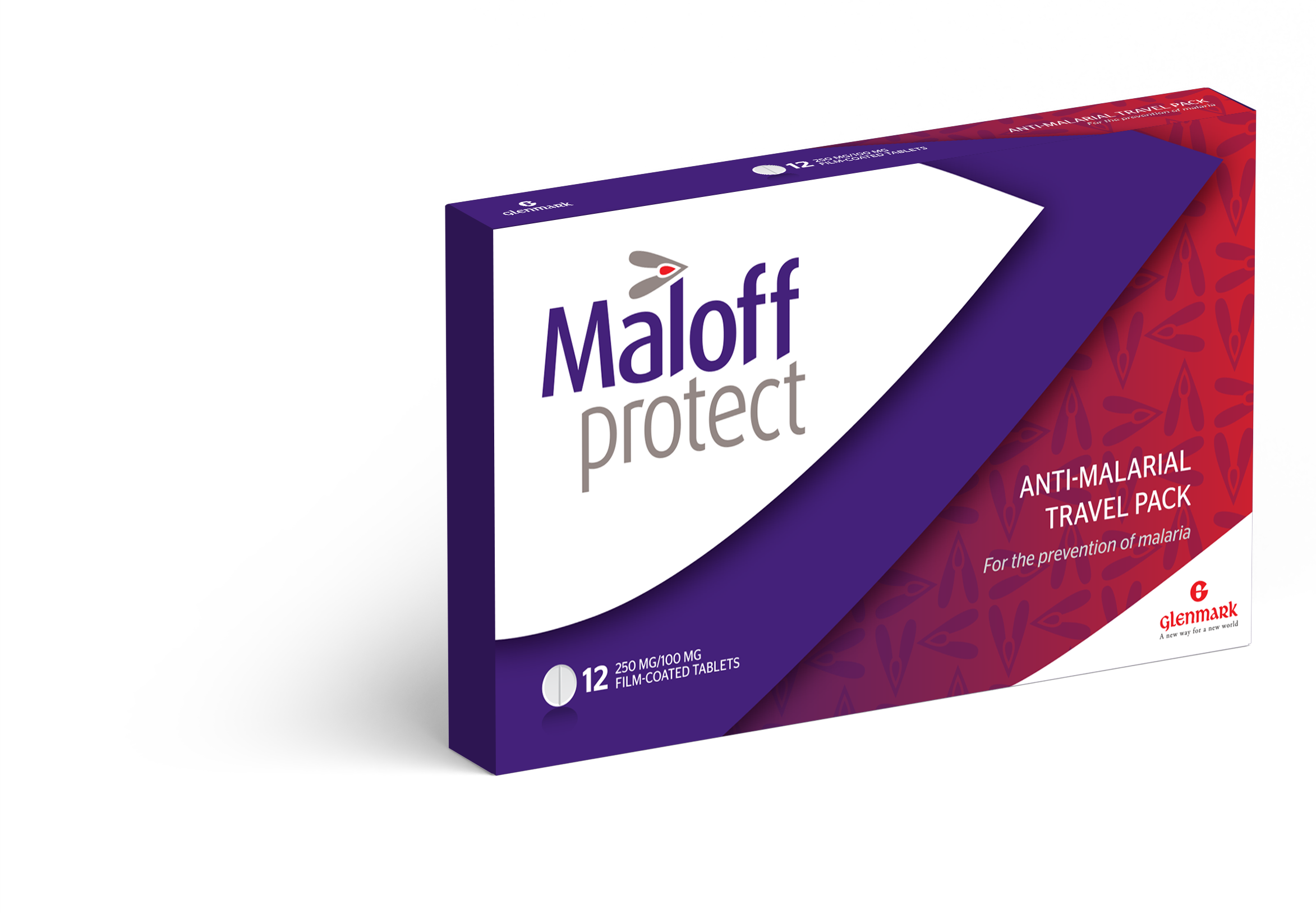 The Maloff Protect logo has been designed to connect immediately with the therapy area. As a prophylactic antimalarial it is important that the mark communicates both the protection, fast action, simplicity and premium support the Maloff brand offers. As such, the icon that sits at the top of the ‘L’ bears more than a passing resemblance to a mosquito. It also symbolises forward movement and implies that the brand offers ‘more than’ any competitors.